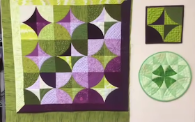 Nancy Goff has her completed larger and mini quilts, very curvy!